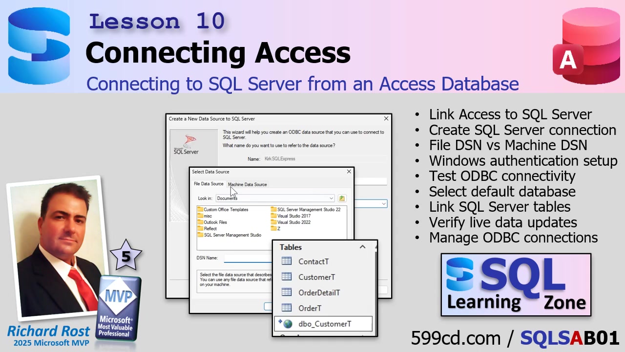 Today you learned how to bridge your Access front end with SQL Server, bringing in live, linked tables that deliver all the robustness of SQL Server with the user-friendly experience of Access. Play around with it, try making some forms or queries - as far as Access is concerned, a linked SQL Server table works almost just like a local one. And if you get stuck, re-check those DSN or driver choices.