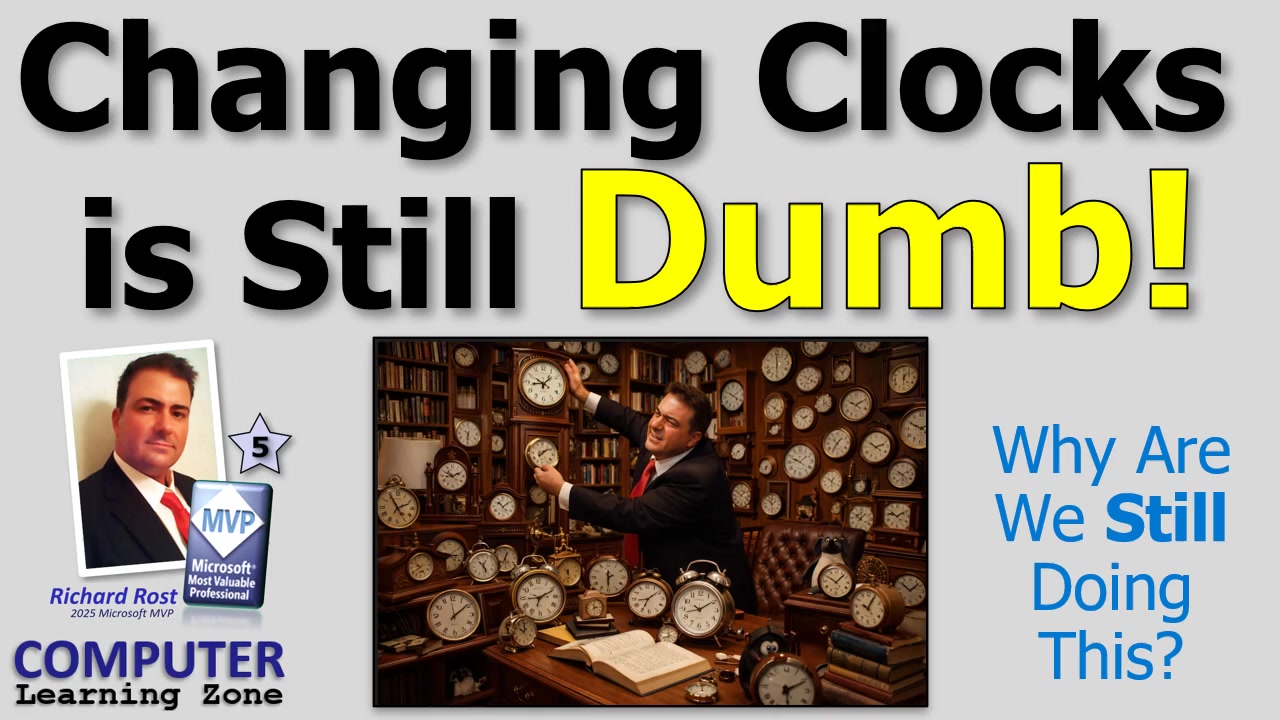 Of course, it's not just about computers. Resetting the oven, car, coffee maker, and wall clocks every time is just tedious - and there's always one you forget. Honestly, for a week or two each year, I just give up and mentally add or subtract an hour every time I look at the clock. The VCR is my nemesis, but at least it doesn't talk back (yet).